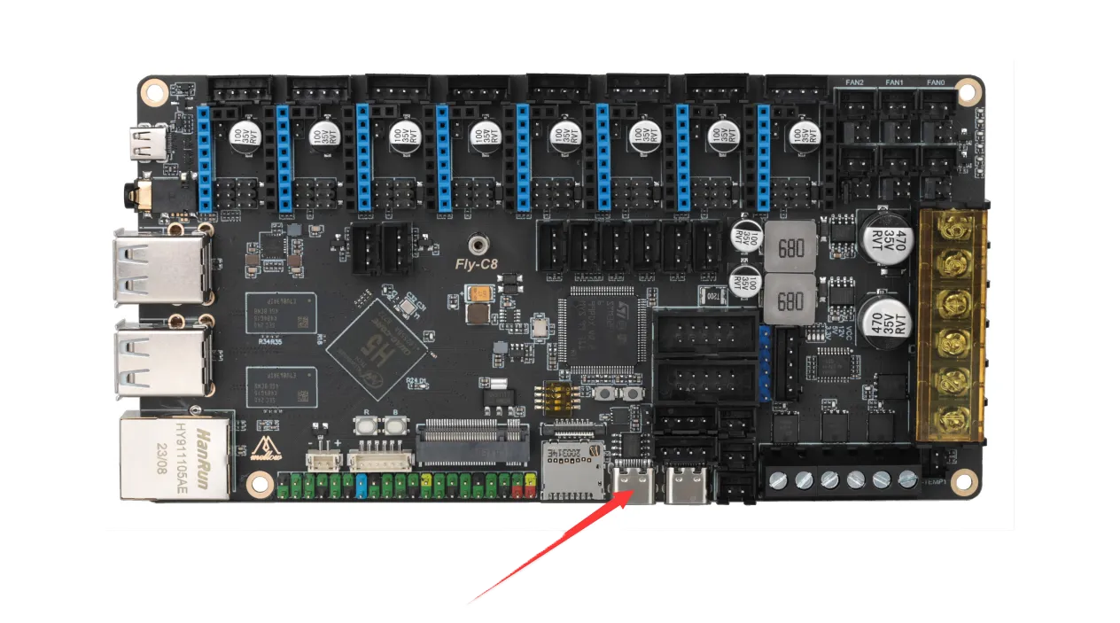 • 使用USB Type-c线材将FLY的上位机与电脑连接