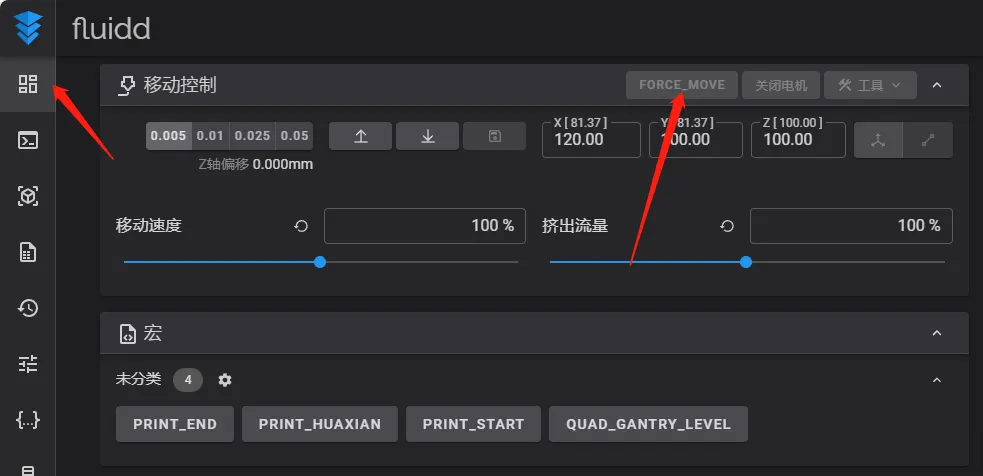 • 控制台输入下方命令即可强制设定打印头位置,设置后可直接控制移动