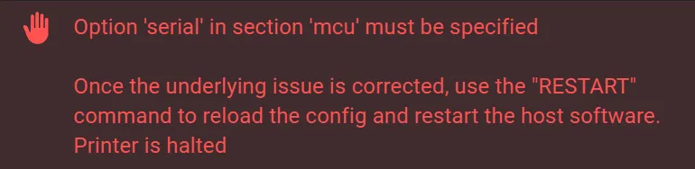 Option 'serial' in section 'mcu' must be specified