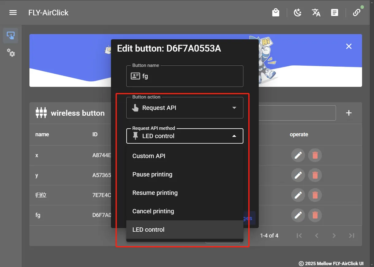 • 自定义GCODE与请求API是通过无线连接进行控制