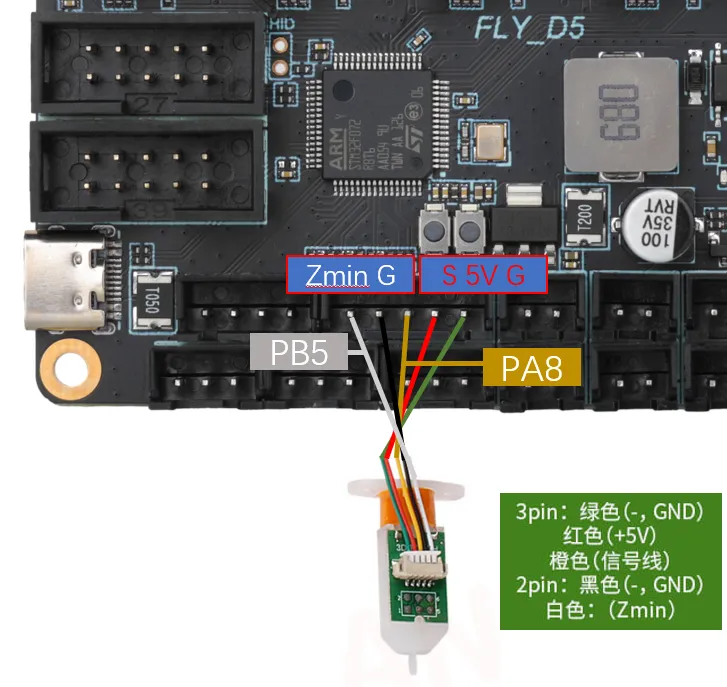 VORON官方建议是使用欧姆龙Omron TL-Q5MC(之前官方推荐的是PL08N,两者原理一样,只是探测距离不一样)传感器来进行热床调平。接线方式如下图所示。
