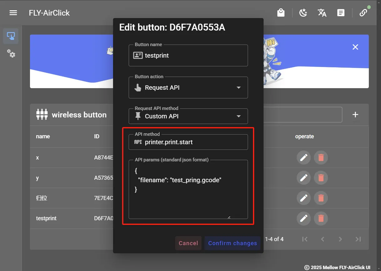 • 自定义GCODE与请求API是通过无线连接进行控制