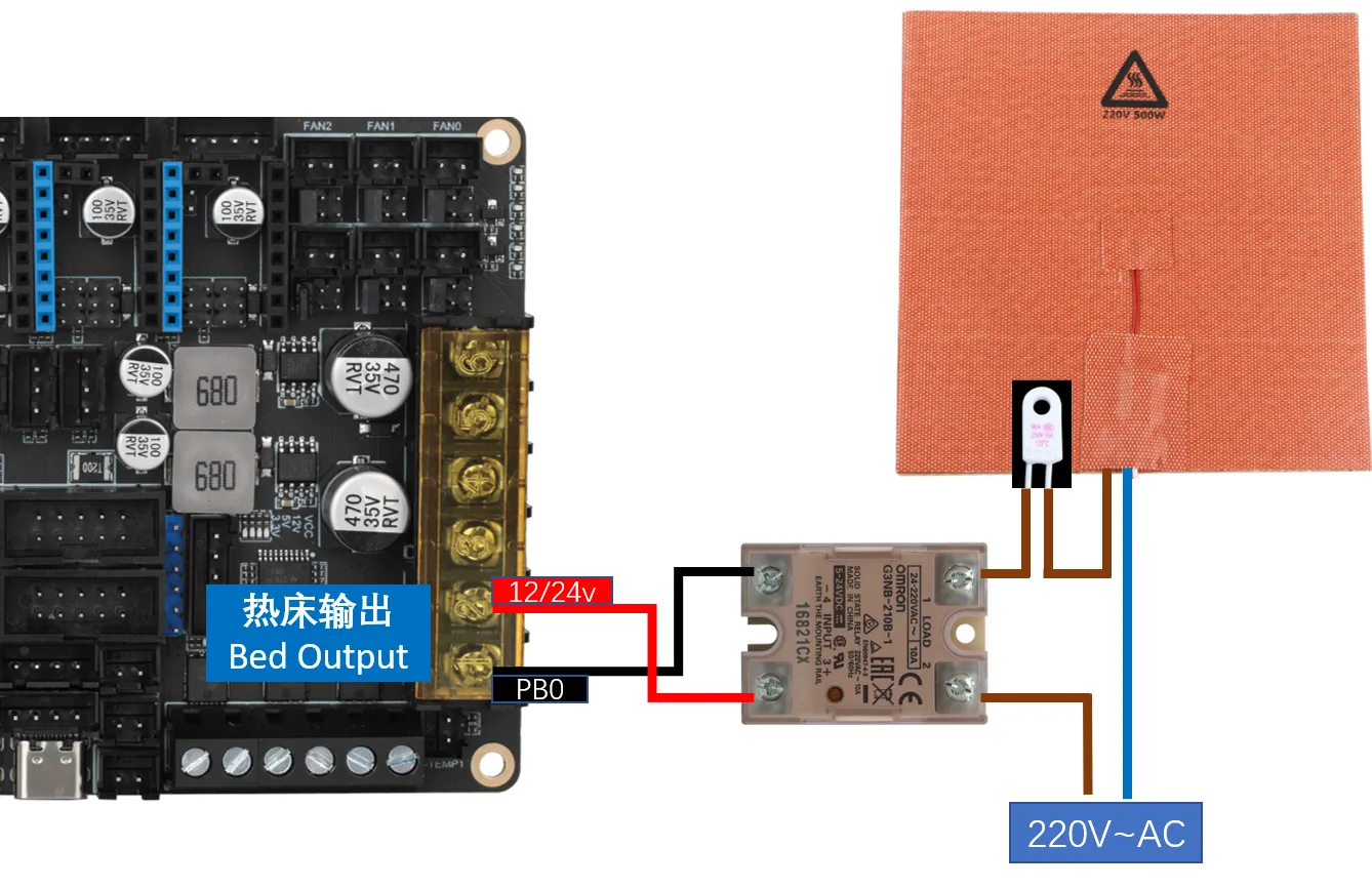 AC Bed: When wiring the solid-state relay, make sure not to connect the input and output incorrectly.