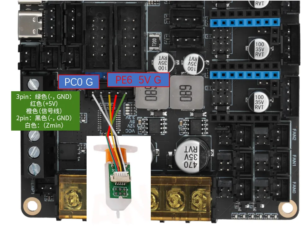VORON officially recommends using the Omron TL-Q5MC sensor (previously, PL08N was recommended, but the principles are the same, only the detection distance differs) for bed leveling. The wiring method is as shown below.
