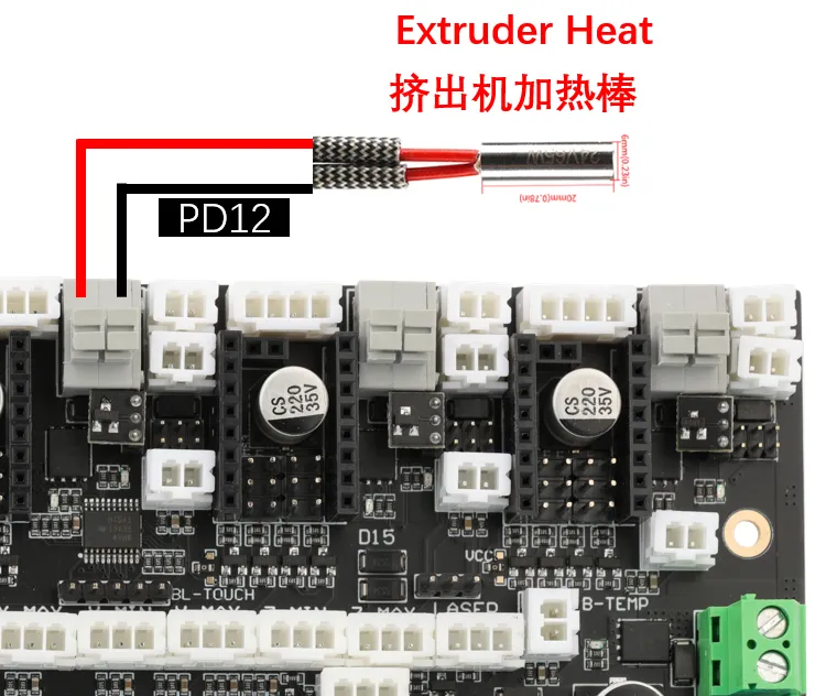 DC Bed: When connecting the DC bed to the onboard MOS, pay attention to the power usage. The maximum current for a DC bed cannot exceed 10A. If it exceeds 10A, it is recommended to use an external MOS module for the bed to avoid irreversible damage to the motherboard.