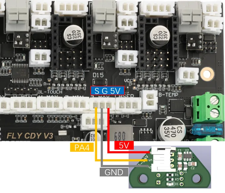 warningVoron Tap is not recommended to connect 24V, as some versions using 24V have a high probability of burning out the Tap sensor. This is not a problem with the Fly product but a design flaw in Voron Tap. Please be aware!!!