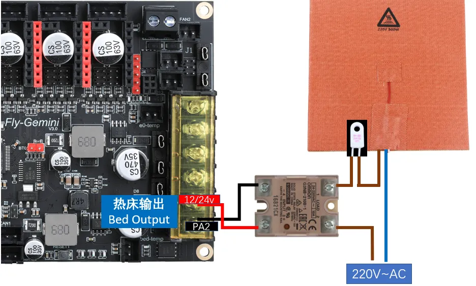 • AC Bed: When wiring the solid-state relay, make sure not to mix up the input and output.