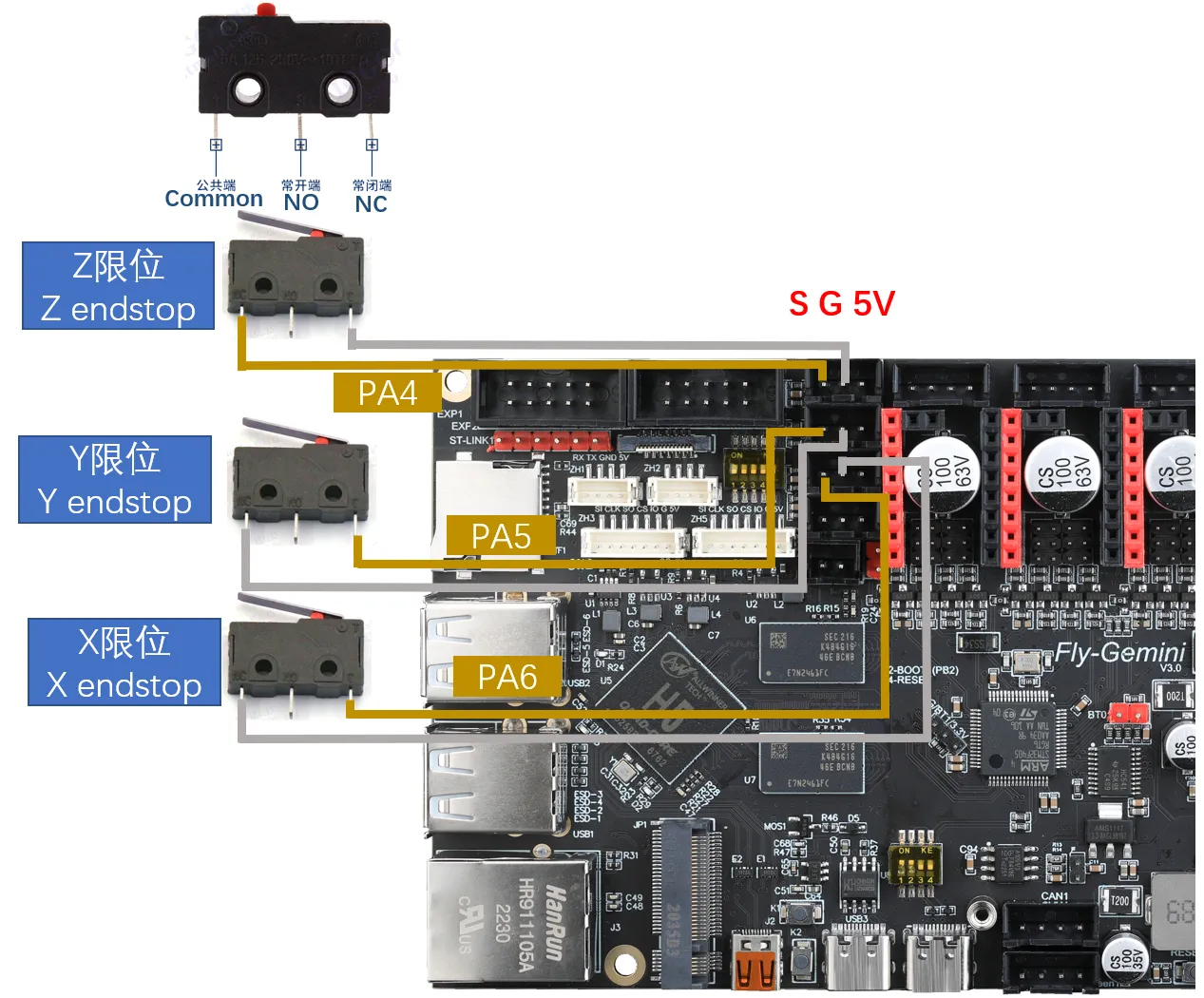 • Limit switches come in normally open (NO) and normally closed (NC) types. Generally, in a 3D printer, it is recommended to use normally closed (NC). This way, if there is a problem with the limit switch circuit, the system will report an error promptly, preventing unnecessary crashes and protecting the printer.