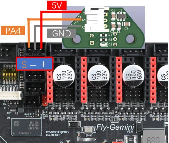 • Klicky is a third-party leveling sensor that can be made at home with low cost and stable performance, making it highly recommended. The wiring method is as shown in the figure.