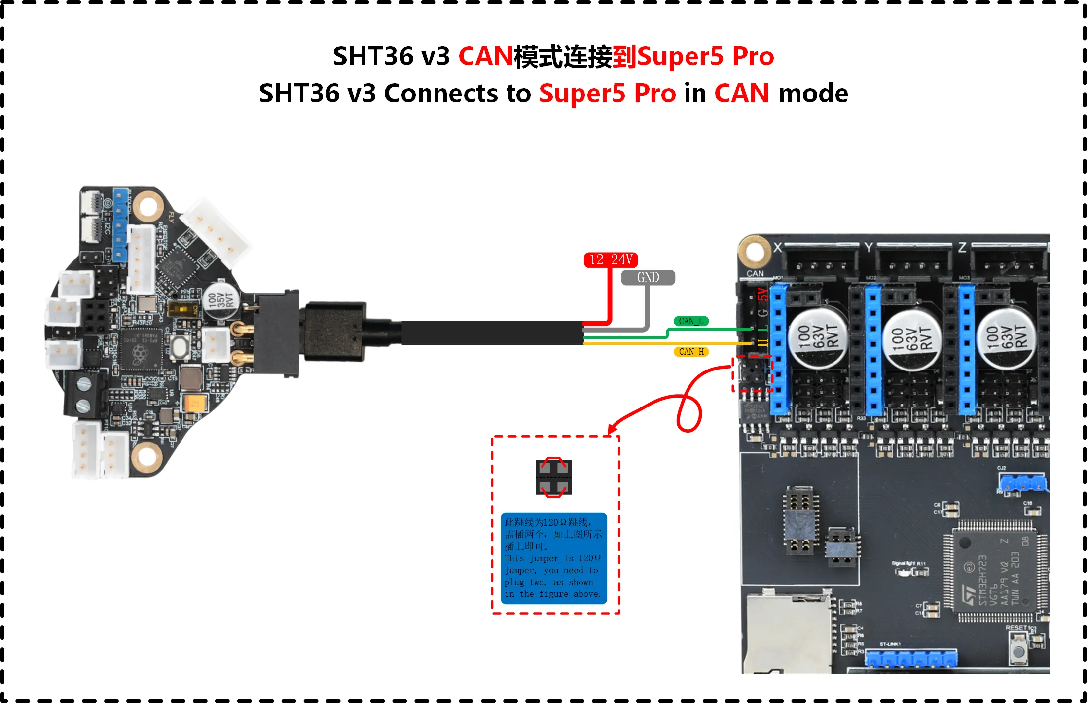 120Ωjumper, note that this is two jumpers. Below is a reference wiring diagram. - CAN tool board wiring reference