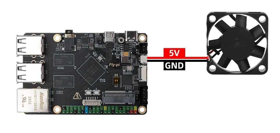 Pi-V2 has an onboard 5V controllable interface for main control cooling, the wiring method is as follows