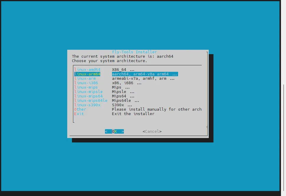 curl -kfsSL https://raw.githubusercontent.com/kluoyun/FLY-Tools/main/scripts/install.sh | sudo bash- Installation options for FLY-Gemini, FLY-π, FLY-C8, FLY-PI-v2