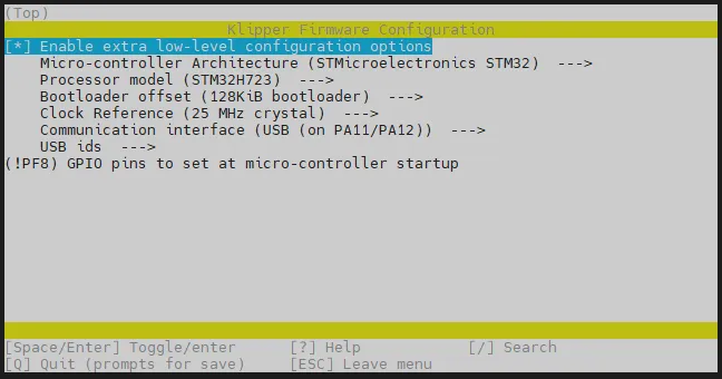 GPIO pins to set at micro-controller startupet ajoutez!PF8 - Veuillez noter que