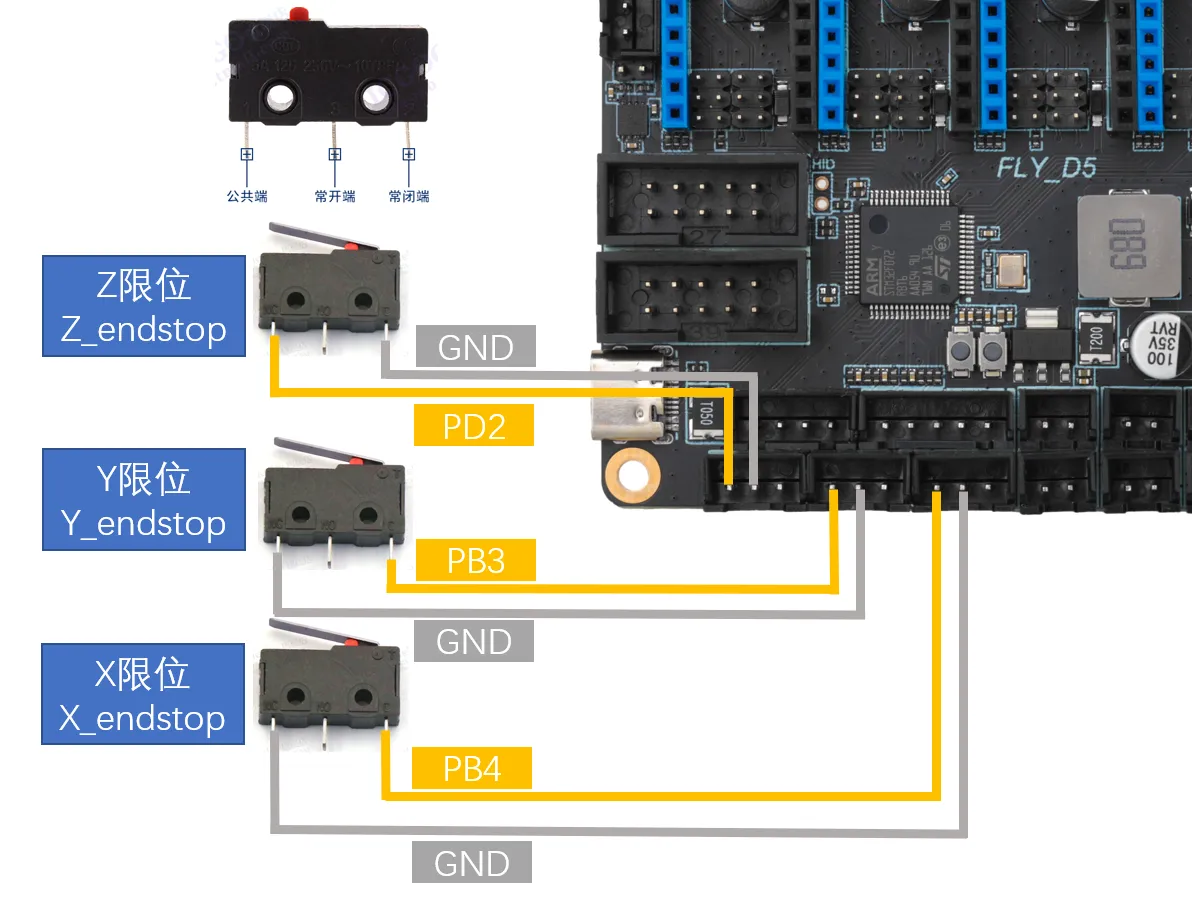 Les fins de course peuvent être de type normalement ouvert (NO) ou normalement fermé (NC). Généralement, pour les imprimantes 3D, il est recommandé d'utiliser le type normalement fermé (NC), ce qui permet de détecter immédiatement les problèmes de câblage et d'éviter des collisions inutiles, protégeant ainsi l'imprimante.