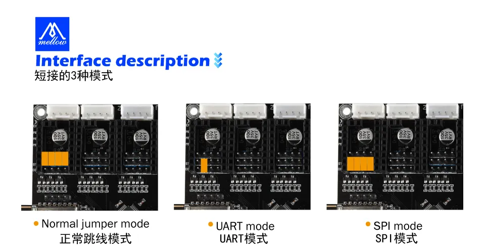 - Support de stealthChop2 pour un fonctionnement silencieux et des mouvements fluides