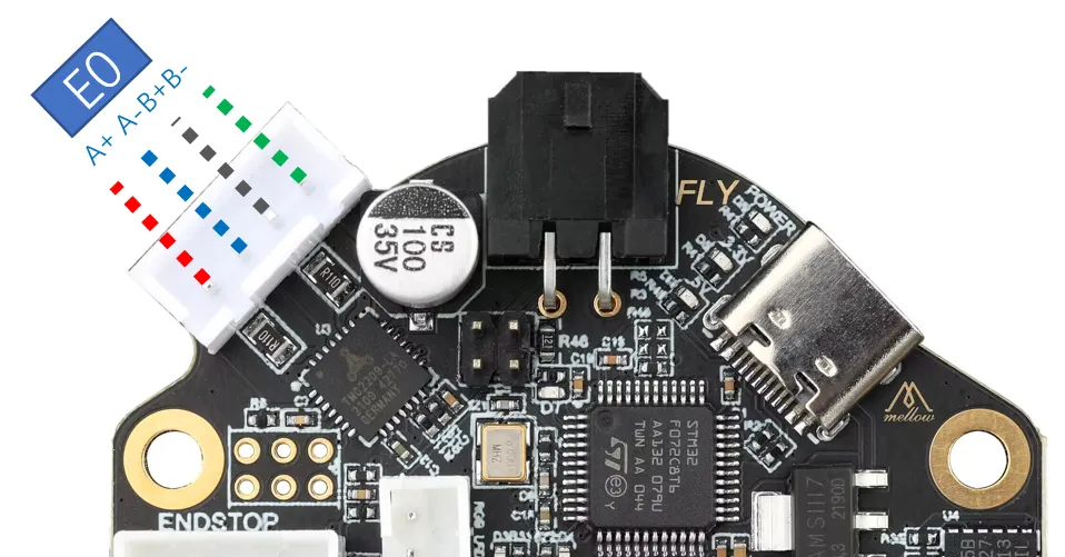 Après avoir terminé le branchement de l'extrudeur, assurez-vous de configurer correctement le courant du driver et de calibrer la direction de rotation du moteur de l'extrudeur.