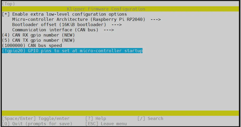 cd ~/klipper && rm -rf ~/klipper/.config && rm -rf ~/klipper/out && make menuconfig