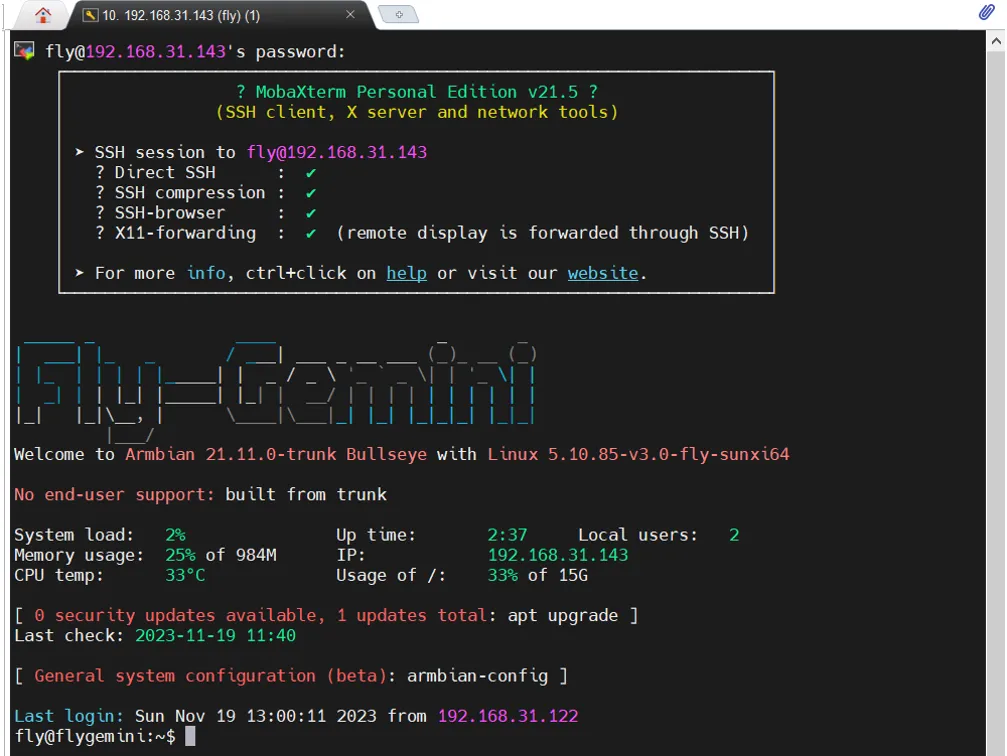 - 上位機のユーザー名とパスワードを確認してください、FLYシステムのデフォルトユーザー名はfly、デフォルトパスワードはmellowです