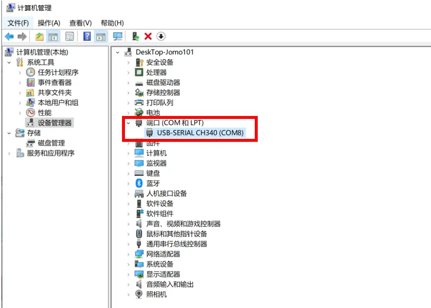 - マザーボードとPCが正常に接続されている場合、デバイスマネージャを開くとCH340のポートが表示されます。