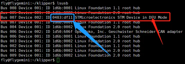 sudo apt install dfu-util -y- 以下のコマンドを実行して接続が成功したかどうかを確認します。