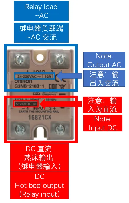 • 交流ヒートベッド: ソリッドステートリレーを配線する際には、入力と出力を間違えないように注意してください。