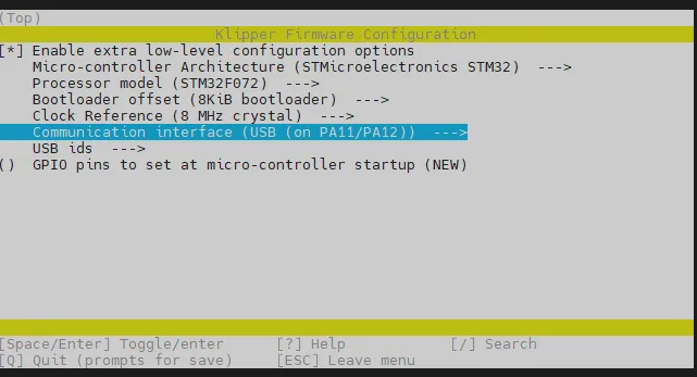 cd ~/klipper && rm -rf ~/klipper/.config && rm -rf ~/klipper/out && make menuconfig-