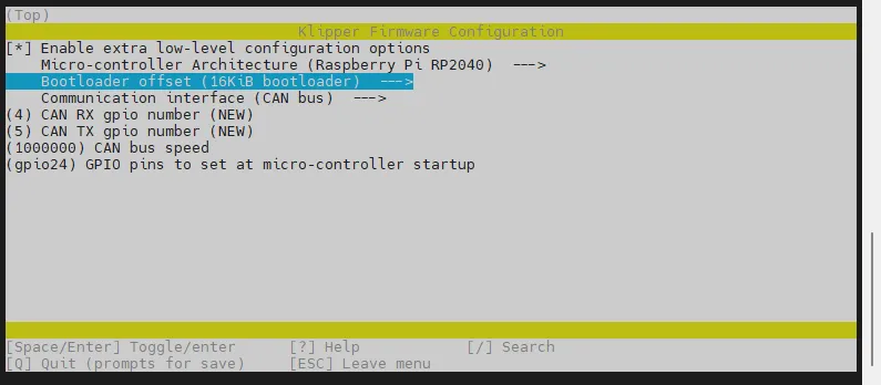 cd ~/klipper && rm -rf ~/klipper/.config && rm -rf ~/klipper/out && make menuconfig -