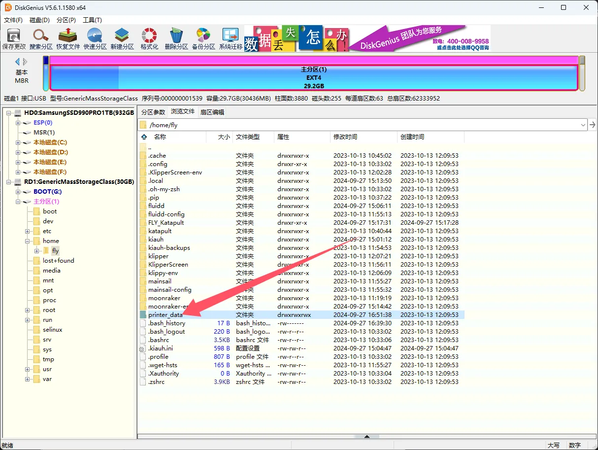 printer_data폴더에는 인쇄 파일, klipper 설정, klipper 로그 등이 포함되어 있으며, 전체를 직접 내보낼 수 있습니다.