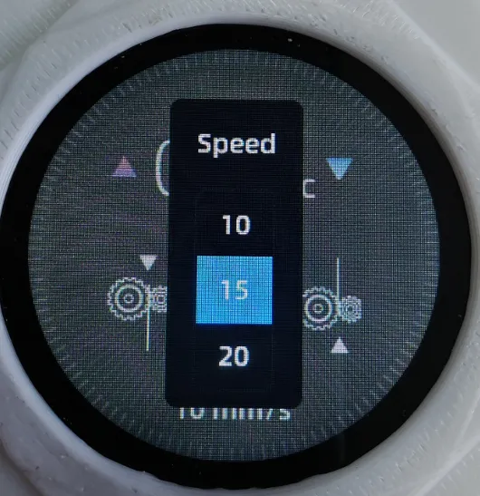 7. 길게 누르기: 위의 그림 2의 압출 속도 설정으로 이동, 위아래로 스크롤하여 압출 속도 선택, 단위 mm/s, 선택 후 주변 빈 영역을 클릭하여 나가기
