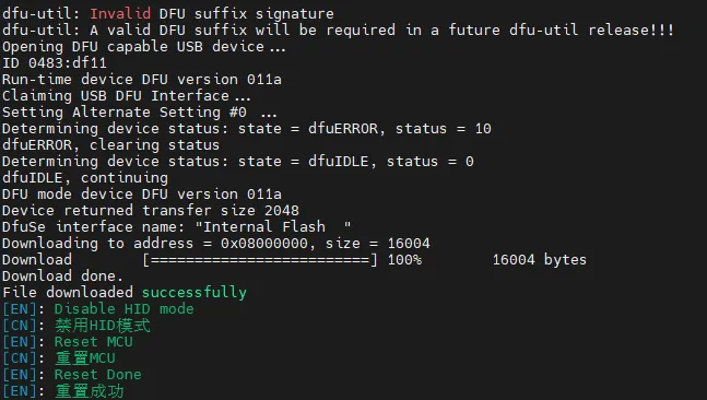 - 아래와 같은 메시지가 나타나면 펌웨어 플래싱 완료