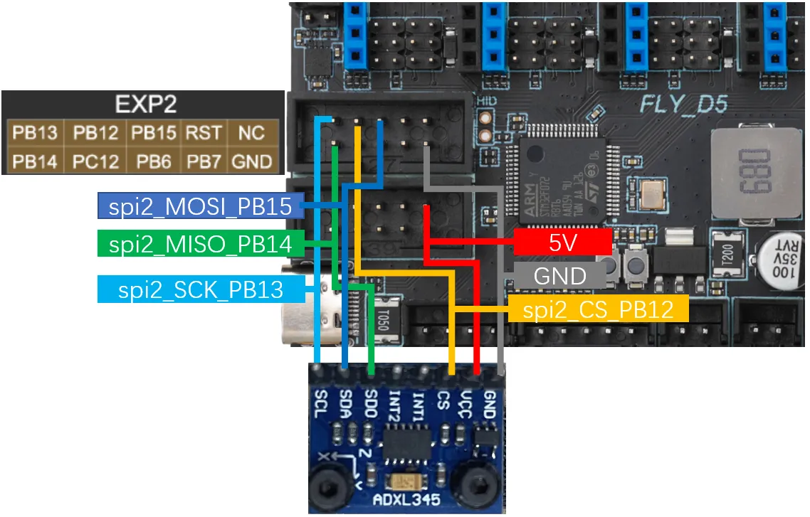 ACCELEROMETER_QUERY CHIP=<ADXL>其中<ADXL>需要修改成对应的加速度计名字 - 如果出现报错请检查接线及配置