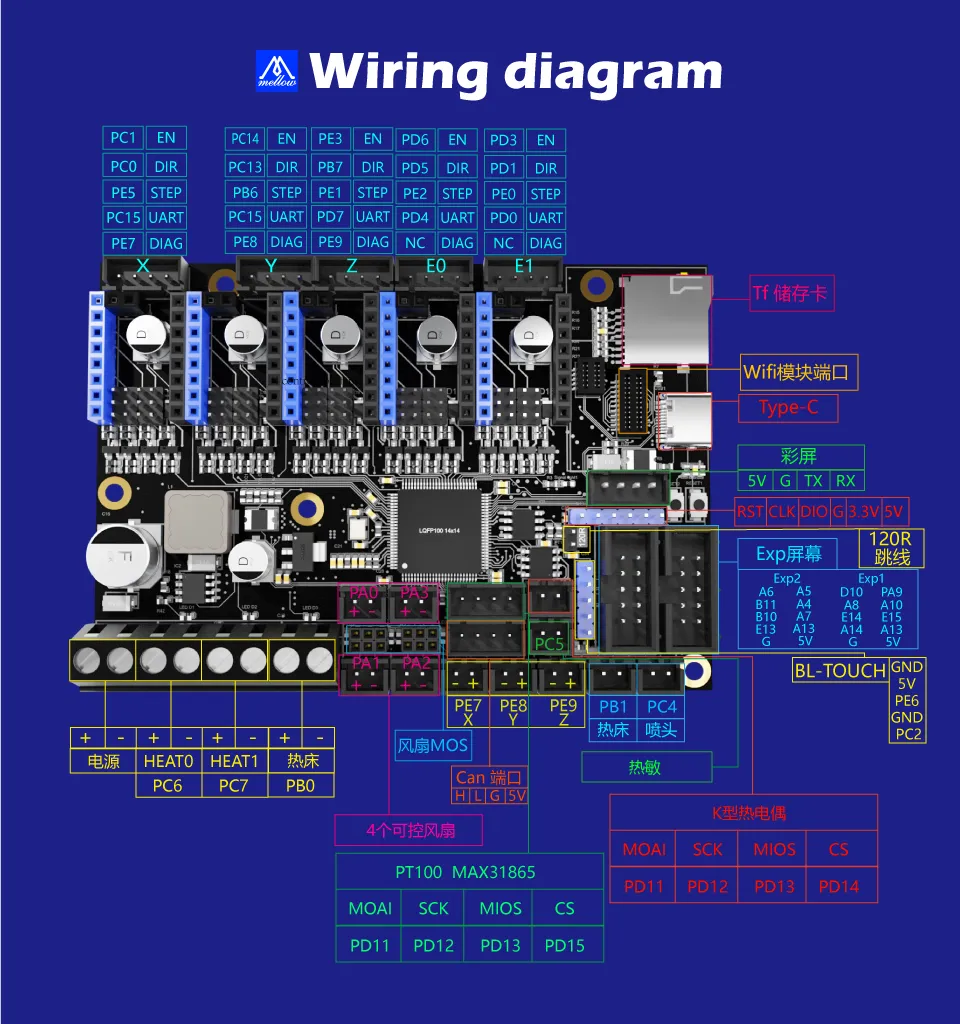 SPI 모드. 이 모드를 가장 많이 사용하는 드라이버는 TMC5160, TMC2230 등입니다. 이러한 드라이버 칩은 SPI를 통해 메인 컨트롤러와 동기 직렬 통신을 수행하며, 동일하게 설정을 수정하여 드라이버의 세분화, 운영 전류, 정숙 모드 등을 설정할 수 있습니다.