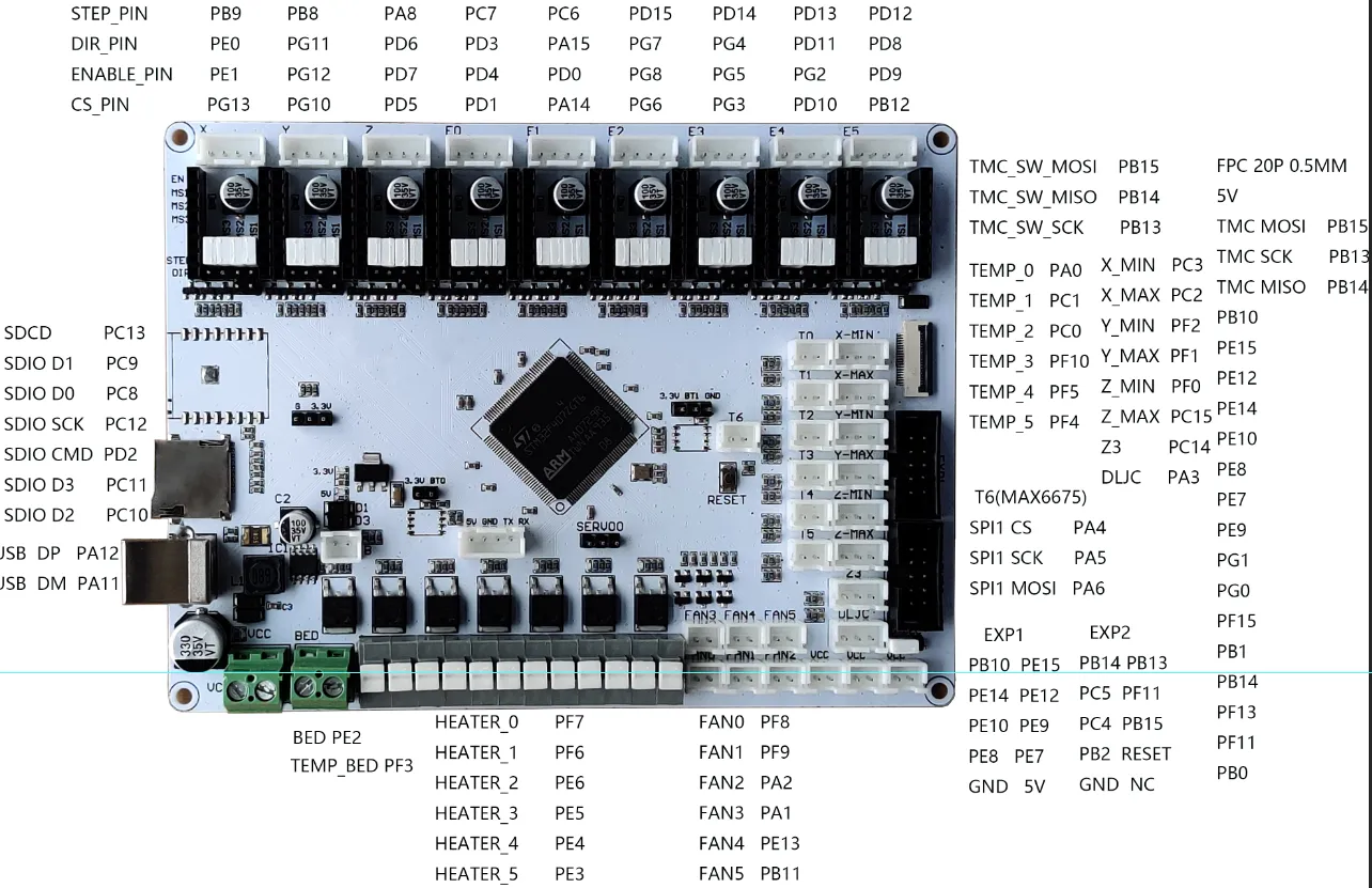 • SPI 모드. 이 모드를 사용하는 가장 일반적인 드라이버는 TMC5160, TMC2230 등입니다. 이러한 드라이버 칩은 SPI를 통해 메인 컨트롤러와 동기 직렬 통신을 하며, 마찬가지로 설정 파일을 수정하여 드라이버의 세분화, 운영 전류, 조용 모드 등을 설정할 수 있습니다.