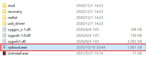 - 드라이버 설치 및 시작 도구로 설치합니다. 설치가 성공하면 설치 디렉토리에 rpiboot.exe 애플리케이션이 있습니다.