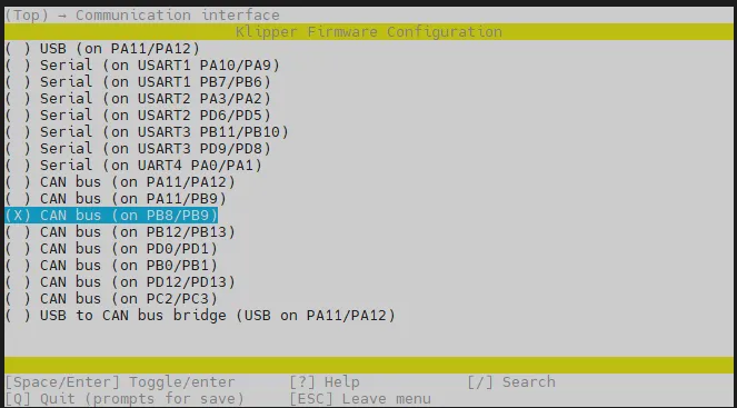 cd ~/klipper && rm -rf ~/klipper/.config && rm -rf ~/klipper/out && make menuconfig -