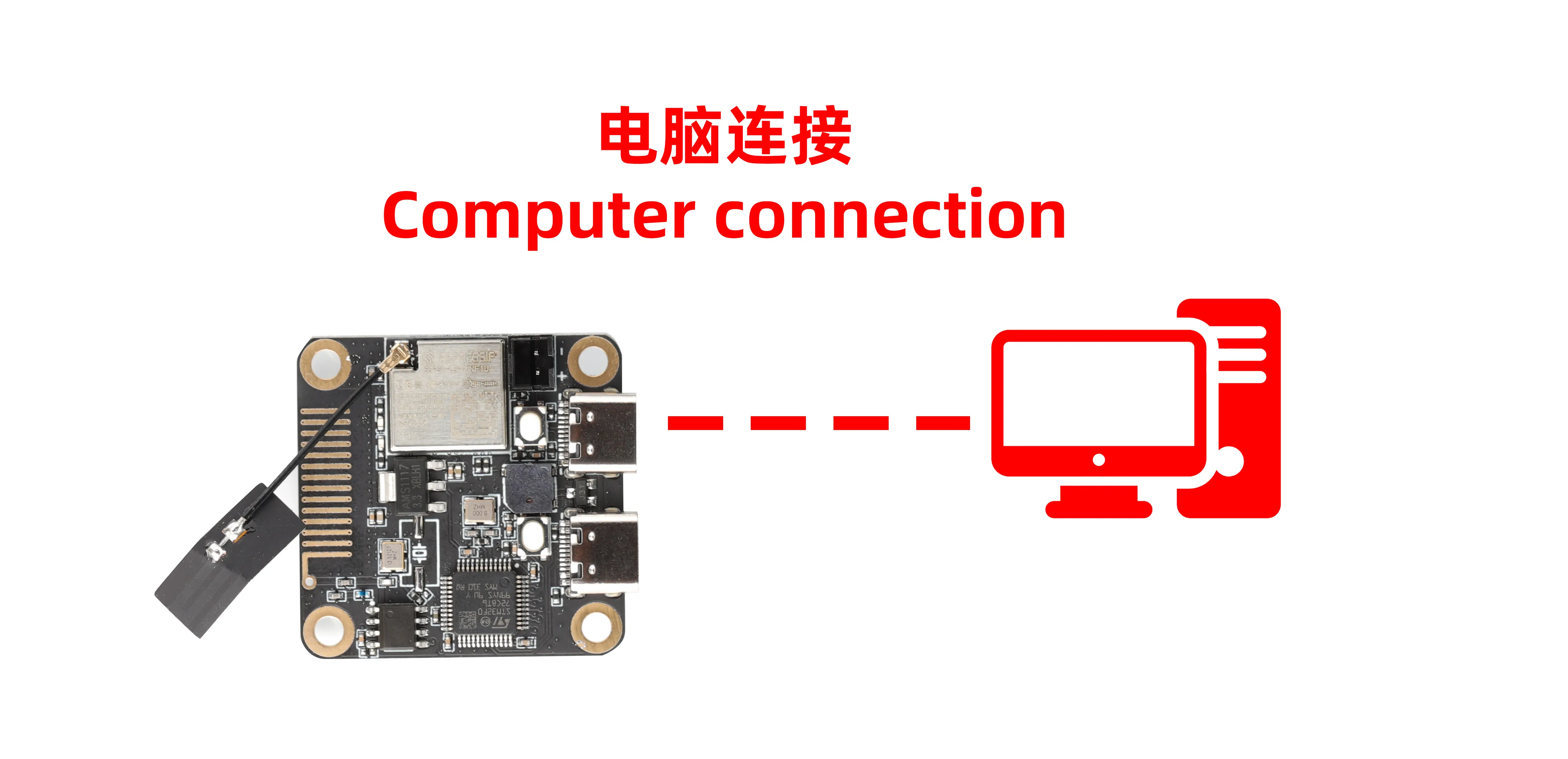 AirClick断电情况下,按照BOOT将AirClick的ESP32烧录口与电脑连接
