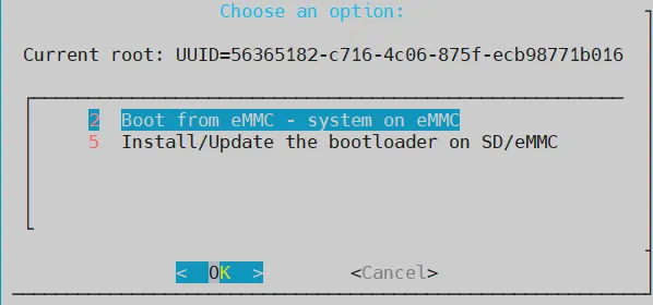Boot from eMMC - system on eMMCи нажмите Enter (обычно это опция по умолчанию, просто нажмите Enter)
