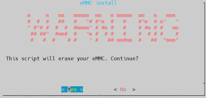 This script will erase your eMMC. Continue?, выберитеYesи нажмите Enter (обычно это опция по умолчанию, просто нажмите Enter)