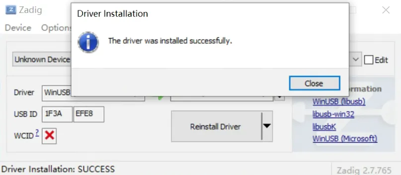 WinUSB(vxxxxxxx), версия не имеет значения - Нажмите