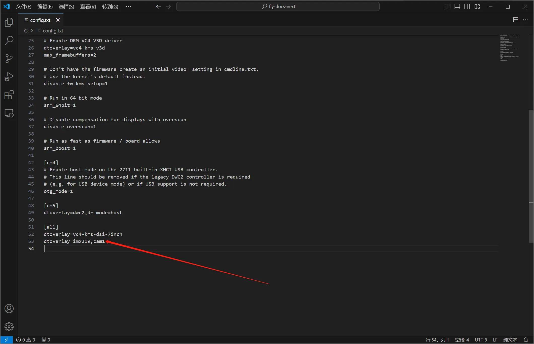 - После завершения записи образа, войдите в /boot/config.txt и найдите