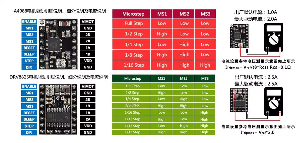 • A4988 не требует настройки драйвера, например, [tmc5160 stepper_x] или [tmc2209 stepper_x], так как это не нужно, и после настройки он не будет работать корректно