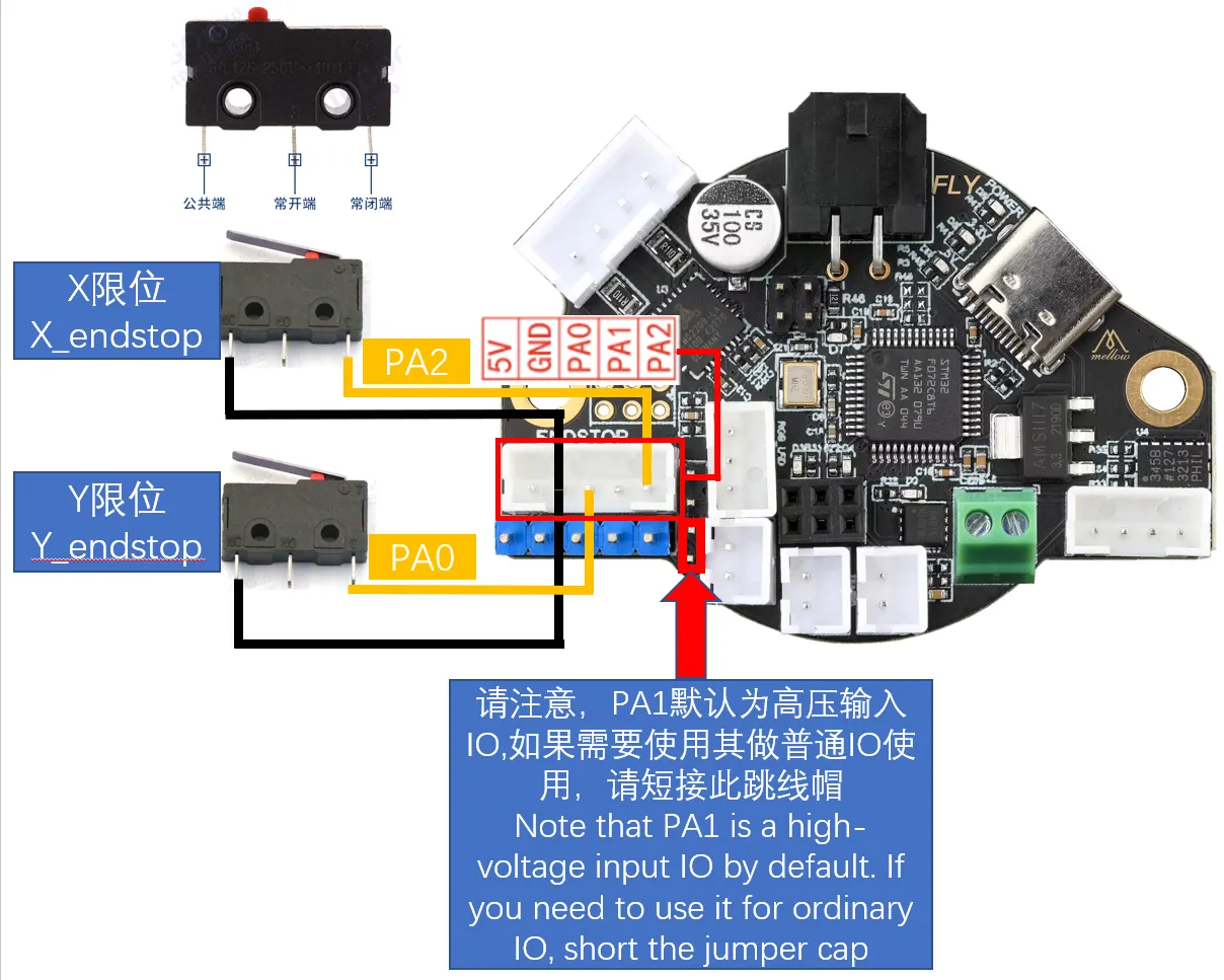 PB1 поддерживает только выход PWM-сигнала, не поддерживает вход сигнала!!! Поэтому его нельзя использовать как вход датчика выравнивания или концевого выключателя!!!