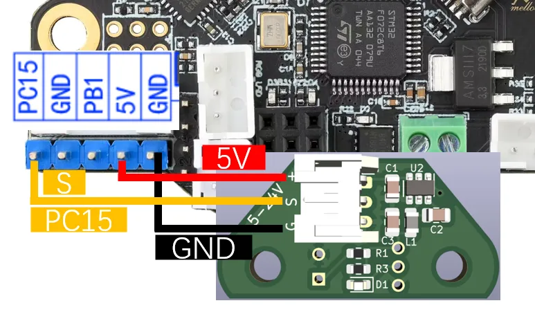 Klicky - это третий сторонний датчик выравнивания, который можно сделать самостоятельно дома с минимальными затратами, обладает стабильной производительностью и высокой ценностью, рекомендуется к использованию. Способ подключения показан на рисунке ниже.