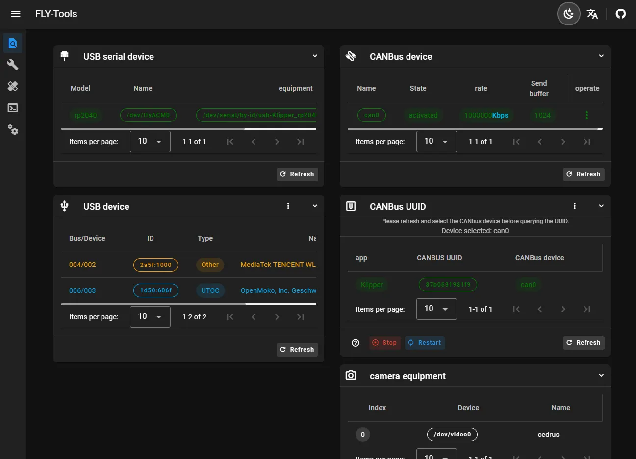 FLY-Tools - это веб-инструмент для отладки, разработанный компанией Guangzhou Magnesium Electronic Technology Co., Ltd. для Klipper. Он подходит не только для Fly HMI (встроенного в систему, установка не требуется), но и совместим с большинством HMI, на которых установлен Klipper.
